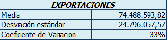 En promedio el valor de las exportaciones anuales de Colombia hacia Rusia en los periodos comprendidos entre los años 2002 a 2012 fue de 74.488.593,82 en miles de dolares. La dispersion existente entre las exportaciones de un periodo y otro es aproximadamente del 33% en los montos de estas en miles de dolares.